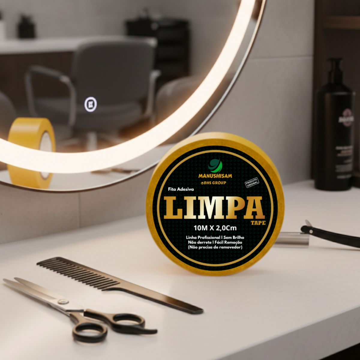 Apresentamos a Fita Amarela Adesiva Limpa Tape, uma solução prática e eficaz para fixação de próteses capilares. Com 2.0 cm de largura, é um rolo dupla face resistente à água, sem brilho e que não derrete. Ideal para bases micropele, silicone ou couro sintético, oferece um ótimo poder de fixação de 3 a 10 dias, dependendo da oleosidade da pele e da umidade do corpo. Não recomendada para bases de tela.