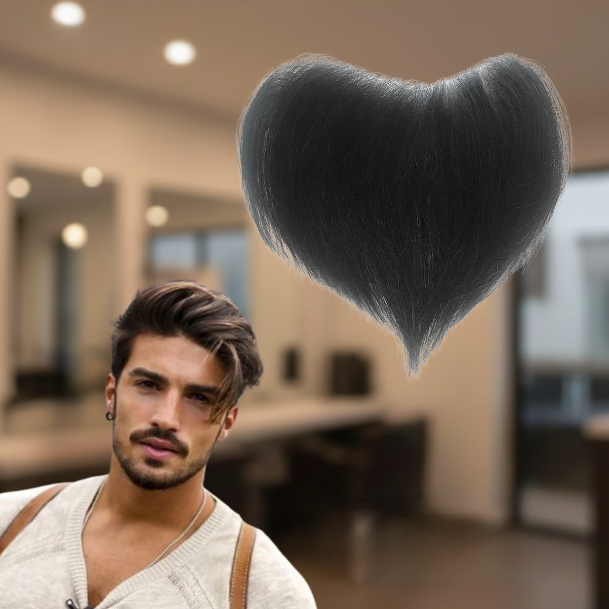 Ela pode ser fixada com cola própria para próteses capilares ou com fitas adesivas, conforme a preferência do usuário e o tipo de aplicação desejado.