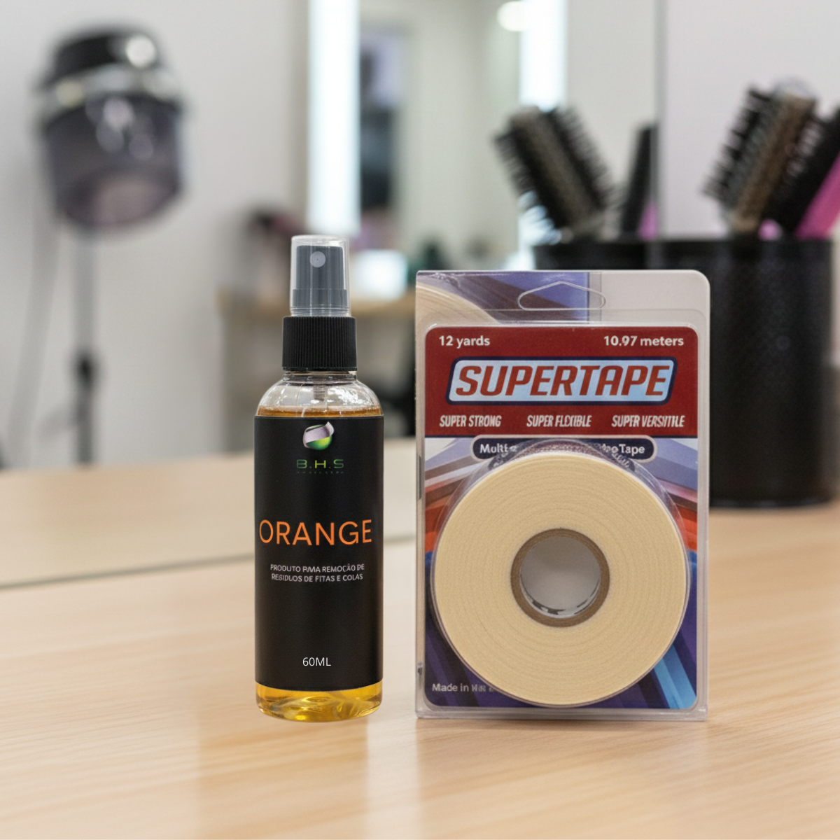 Kit Limpa Fácil - Fita Adesiva Super Tape 12 Yards x 1,9cm + Removedor Orange 60 ml Para Próteses Capilares