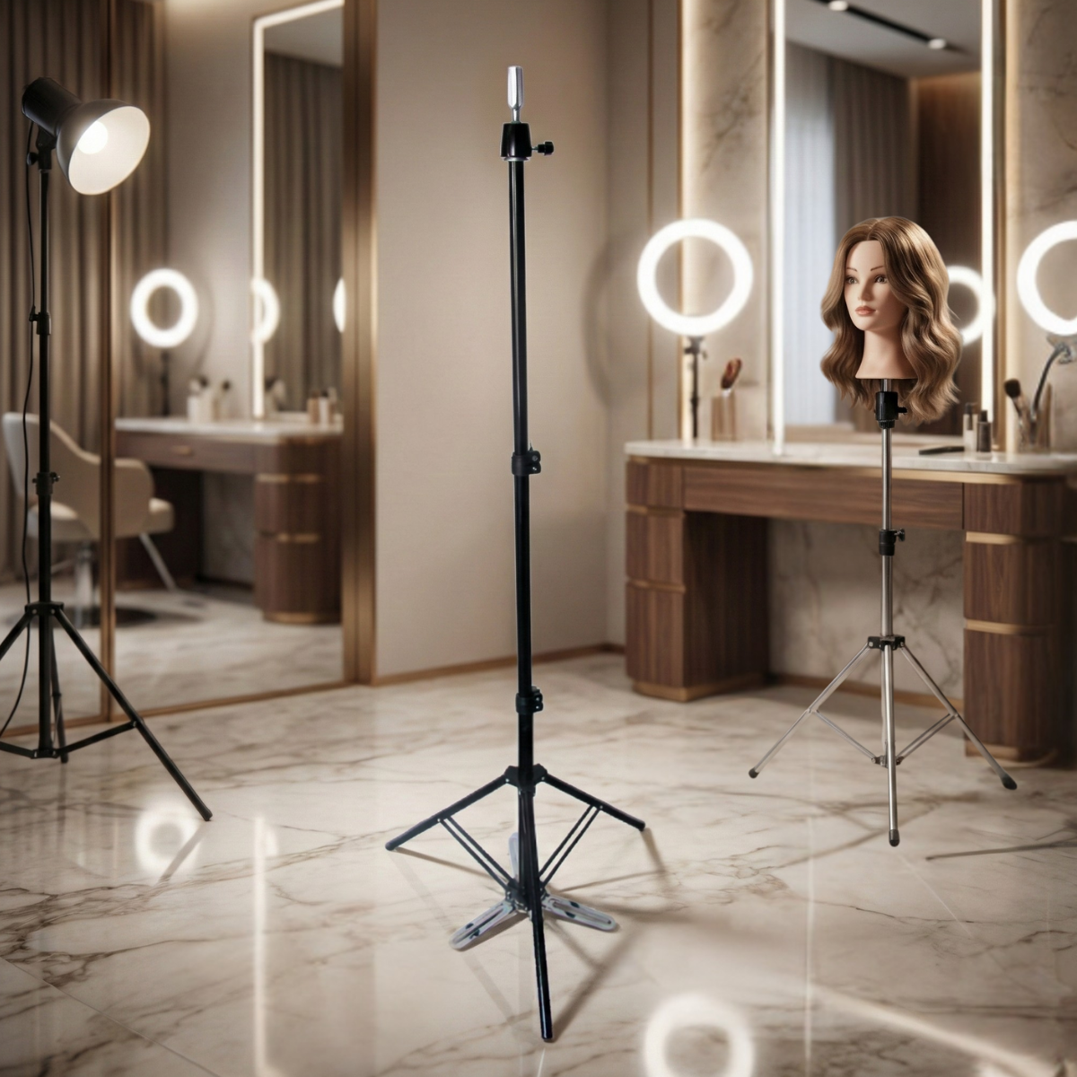 O Tripé para Cabeça de Treino tem seu modelo em aço é uma ferramenta de alta qualidade e durabilidade, projetada para praticantes de cabeleireiro, sejam estudantes de salão ou usuários domésticos. Possui altura ajustável e é acompanhado por uma bolsa preta em tecido para facilitar o transporte. Fabricado em aço inoxidável, proporciona resistência e força, tornando-o ideal para diversas práticas de cabeleireiro, como corte, definição e trança.